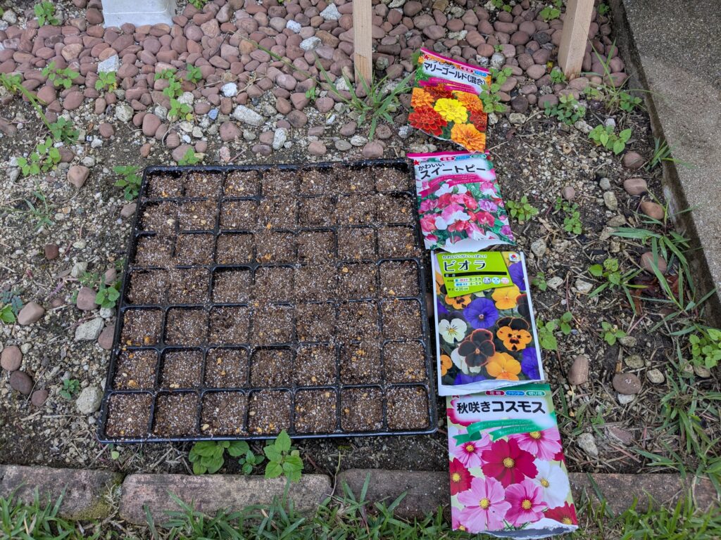 ゴマ3種は、去年畝に直播し、発芽はしていましたが育たずに消えてしまったので、ポットである程度育苗してから畝に移植しようと思います。